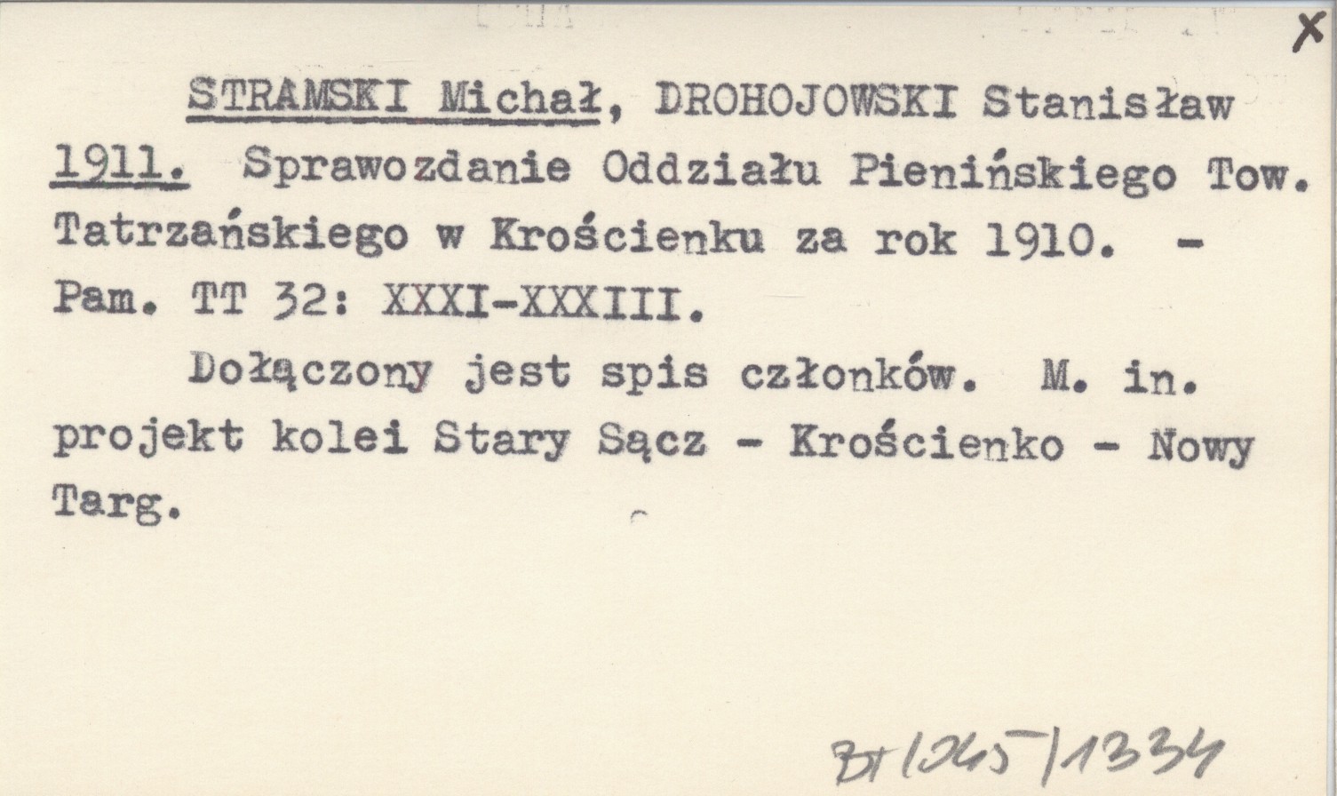 STRAMSKI Michał DROHOJOWSKI, Stanisław. ; 1911 Sprawozdanie Oddziału Pienińskiego Tow. Tatrzańskiego w Krościenku za rok 1910.