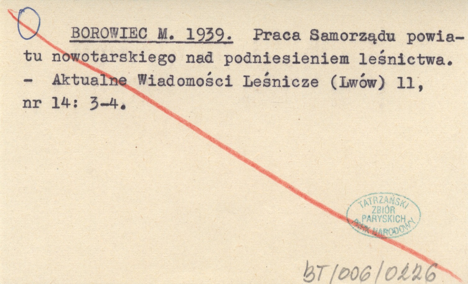 BOROWIEC M. 1939 Praca Samorządu powiatu nowotarskiego nad podniesieniem leśnictwa.
