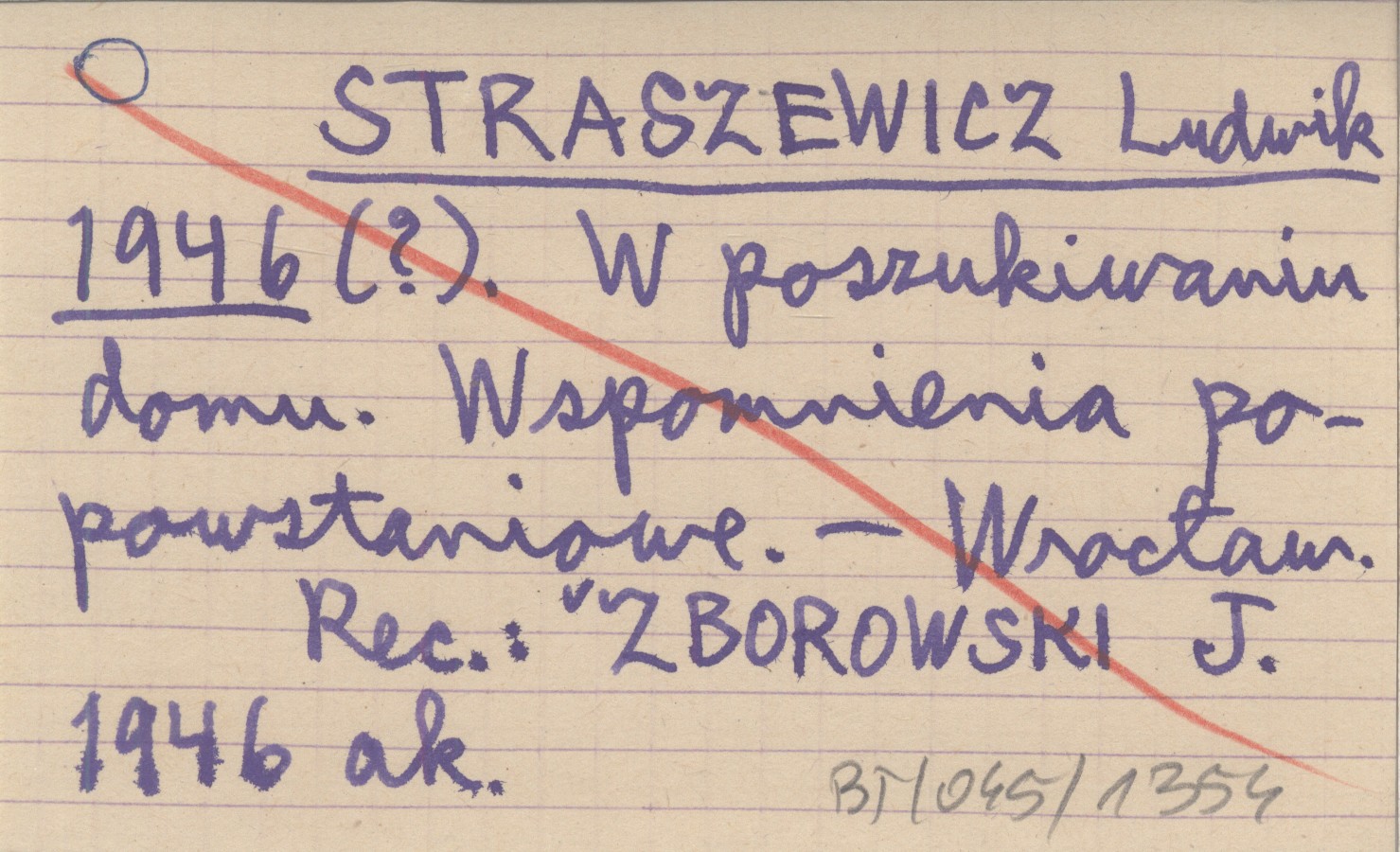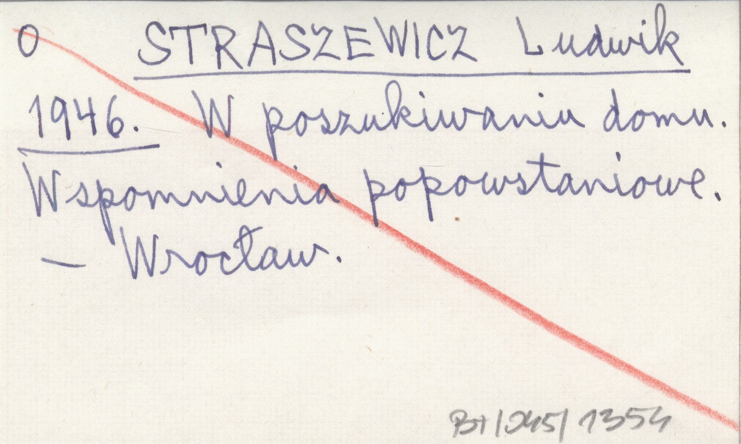 STRASZEWICZ Ludwik 1946 W poszukiwaniu domu. Wspomnienia popowstaniowe.