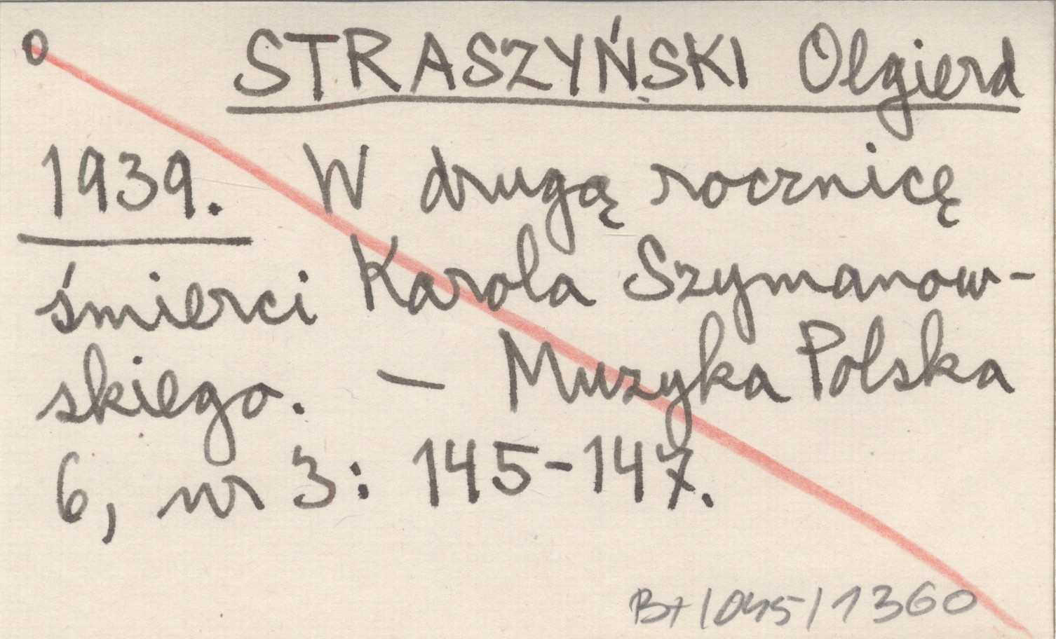 STRASZYŃSKI Olgierd 1939 W drugą rocznicę śmierci Karola Szymanowskiego.