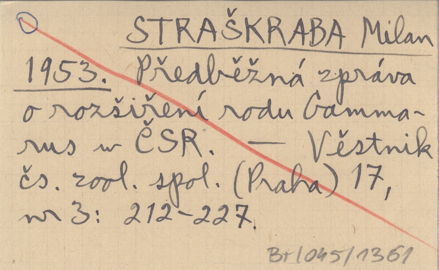 STRAŠKRABA Milan 1953 Předběžná zpráva o rozšiření rodu Gammarus w ČSR.