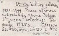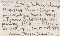 RED: HULEWICZ, Jan. ; TERLECKI, Tymon. ; Straty kultury polskiej 1939-1944. Tom drugi. 1945 a