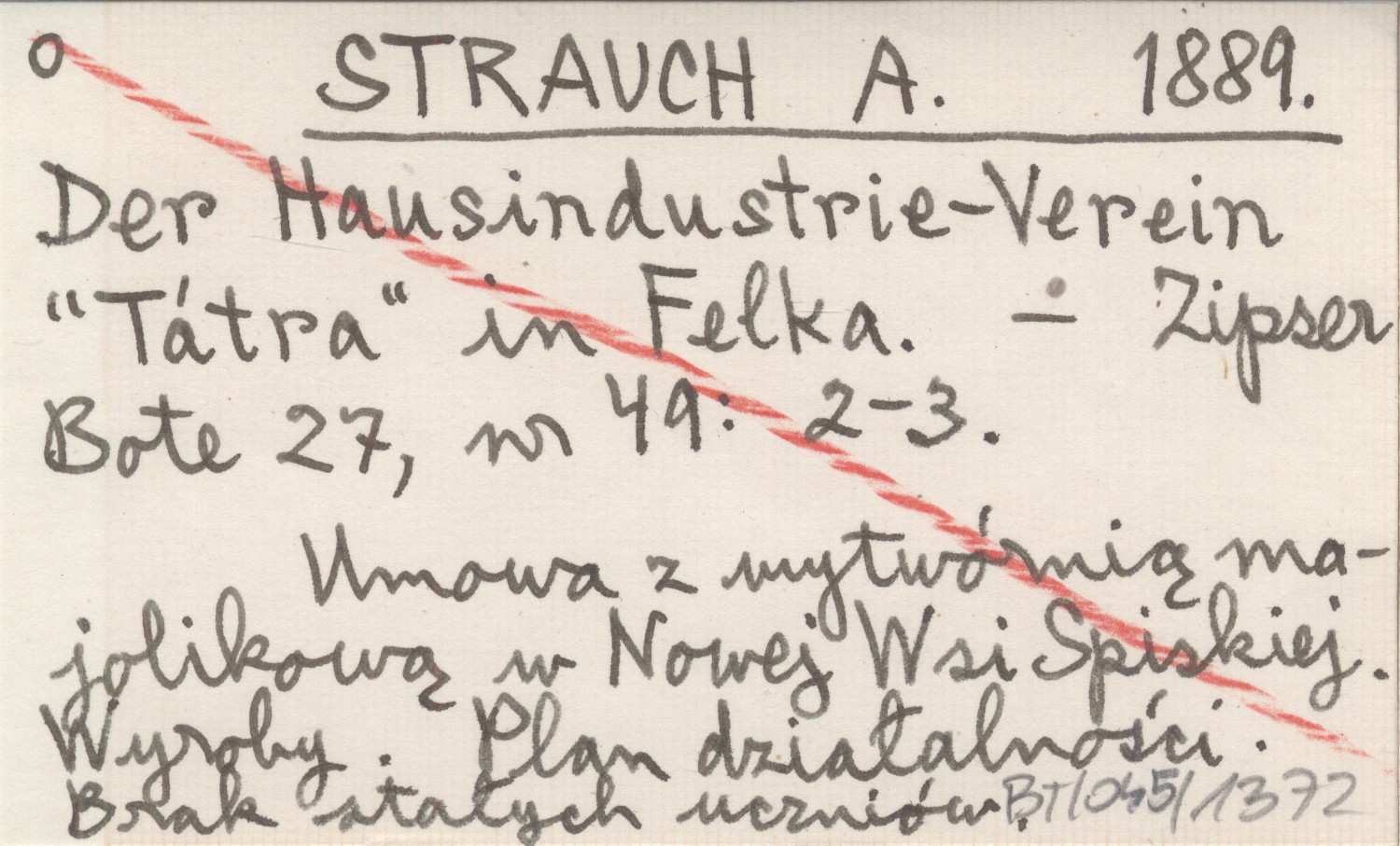 STRAUCH A. 1889 Der Hausindustrie-Verein "Tátra" in Felka.