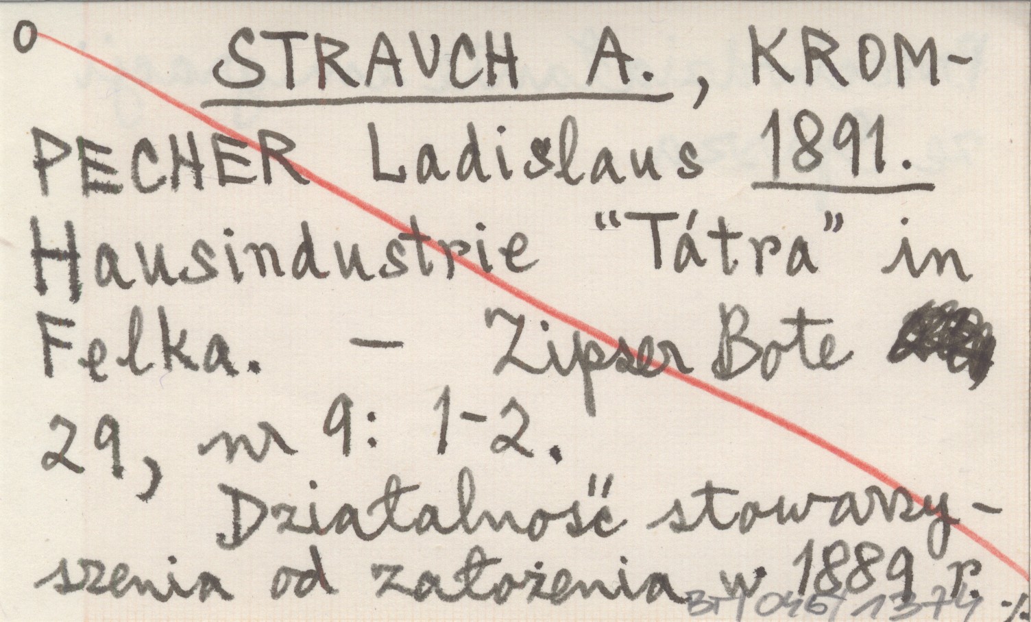 STRAUCH A. KROMPECHER, Ladislaus. ; 1891 Hausindustrie "Tátra" in Felka.