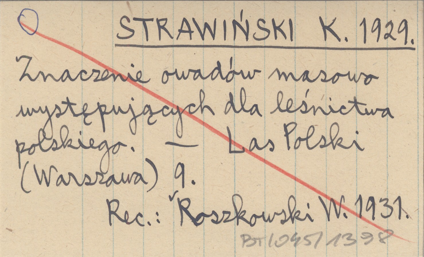 STRAWIŃSKI K. 1929 Znaczenie owadów masowo występujących dla leśnictwa polskiego.