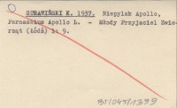 STRAWIŃSKI K. 1937 Niepylak Apollo, Parnassius Apollo L.