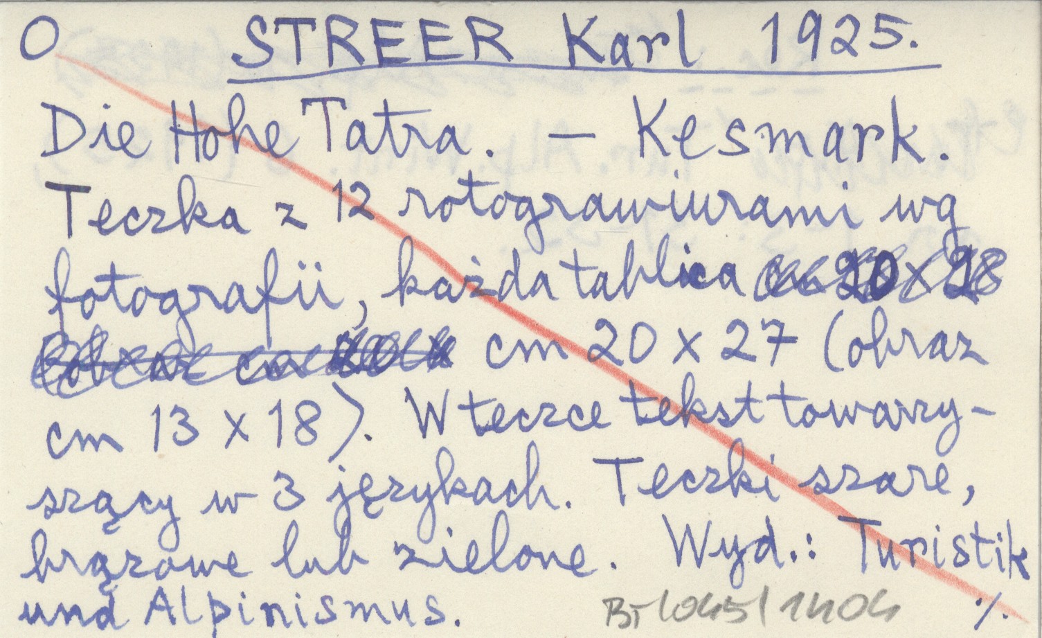 Turistik und Alpinismus, Kesmark , 12 k., 13x18 cm. Teczka z 12 rotograwiurami wg fotografii, każda tablica 20x27 cm. W teczce tekst towarzyszący w 3 językach. Teczki szare, brązowe lub zielone. REC: Tur. Alp. Wint. 6 (1925), nr 1-3: 31-32.