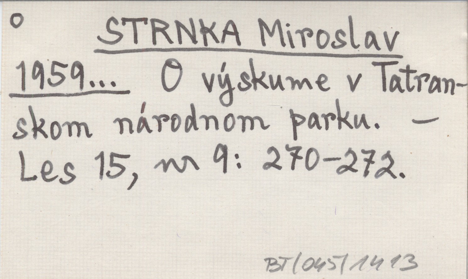 STRNKA Miroslav 1959... O výskume v Tatranskom národnom parku.
