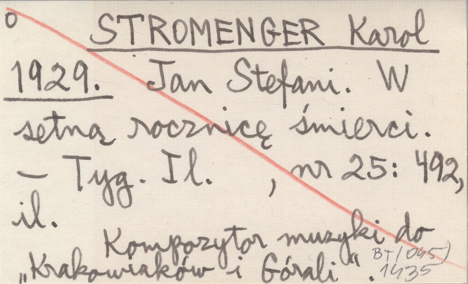 STROMENGER Karol 1929 Jan Stefani. W setną rocznicę śmierci.