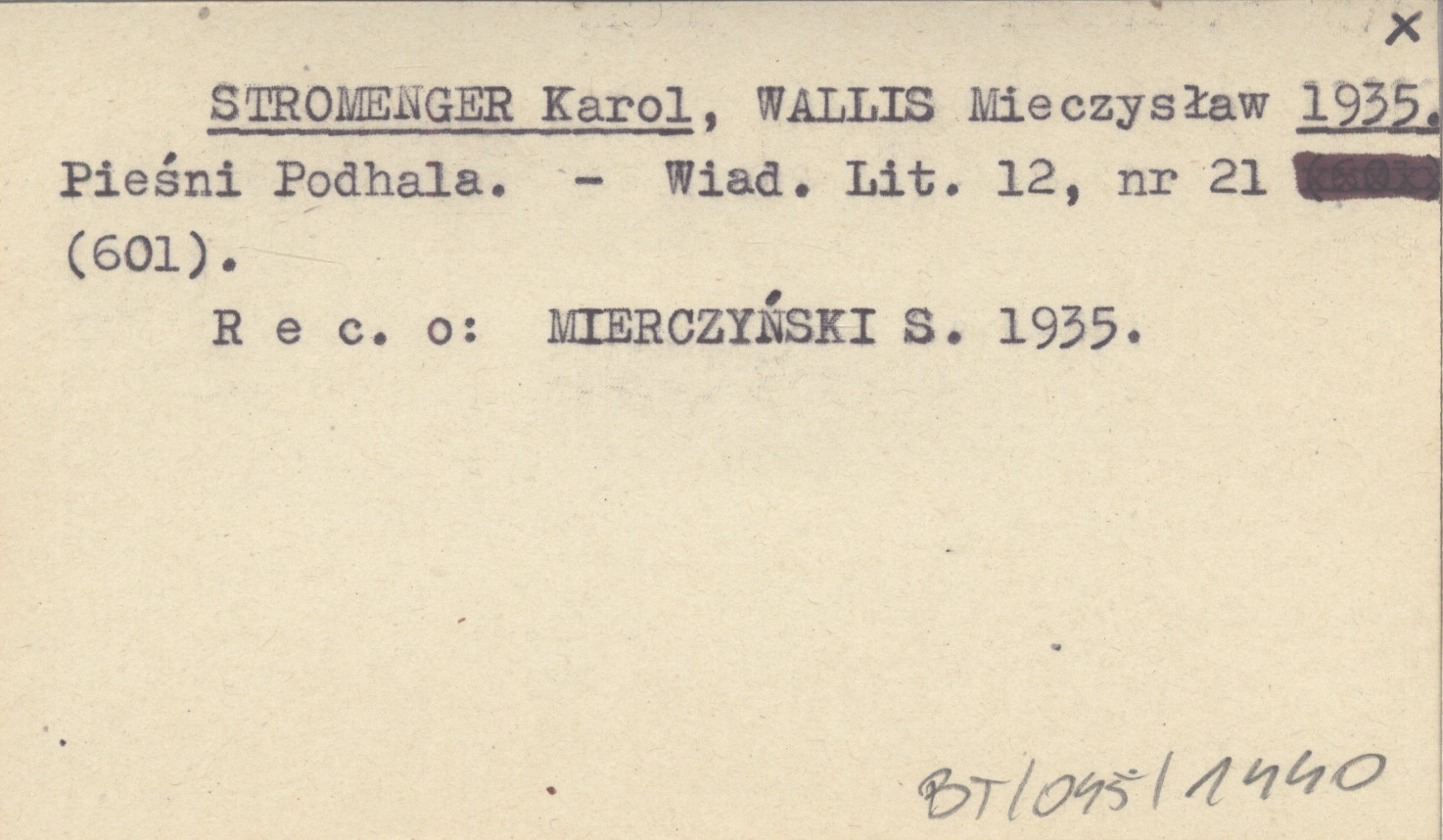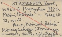 STROMENGER Karol WALLIS, Mieczysław. ; 1935 Pieśni Podhala.