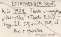 K. S. [STROMENGER Karol] 1934 Teatr i muzyka. "Szarotka" (Teatr 8.30).