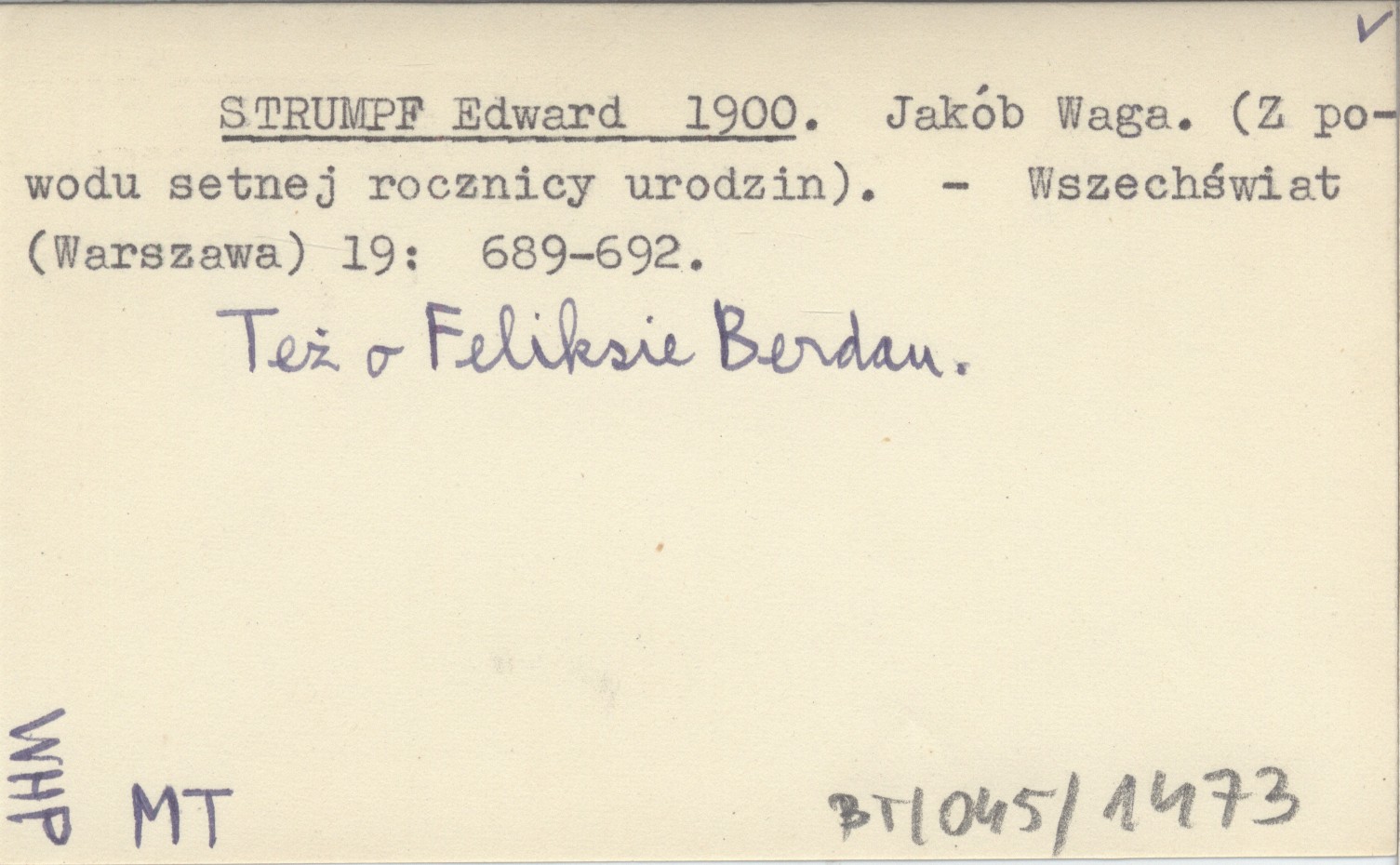 Wszechświat (Warszawa) , 19: 689-692. Też o Feliksie Berdau.