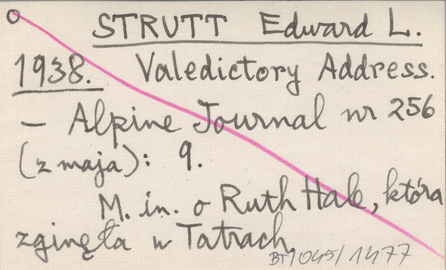 Alpine Journal, Nr 256 (z maja): 9. M. in. o Ruth Hale, która zginęła w Tatrach.