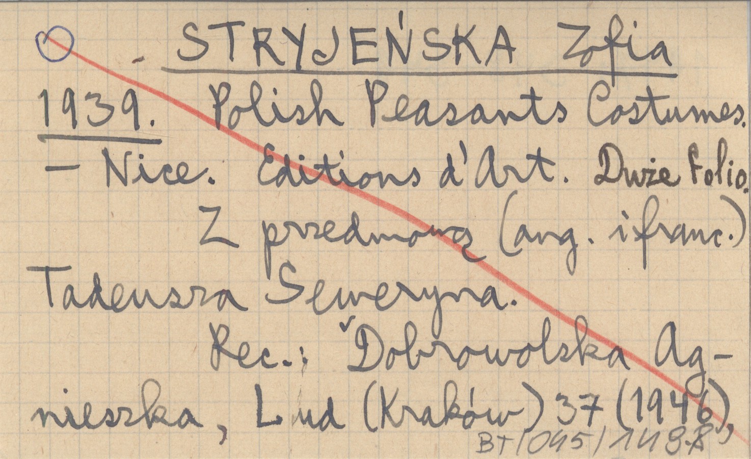 Nice , Editions d'Art. Z przedmową (ang. i franc.) Tadeusza Seweryna. REC: DOBROWOLSKA Agnieszka, Lud (Kraków) 37 (1946) 1947: 348-349.