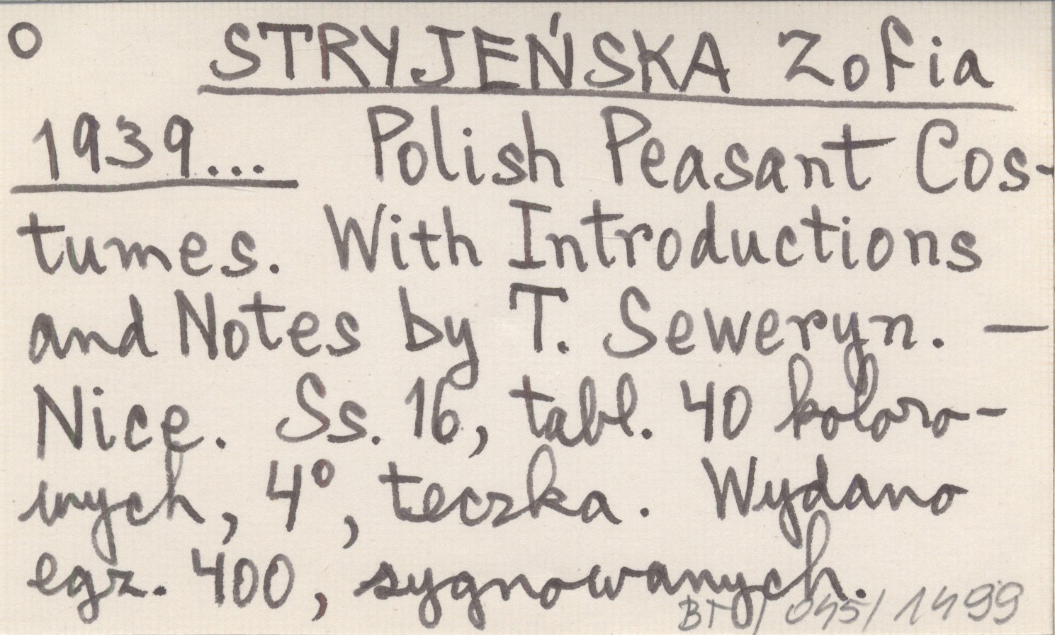 STRYJEŃSKA Zofia 1939... Polish Peasant Costumes. With Introductions and Notes by T. Seweryn.
