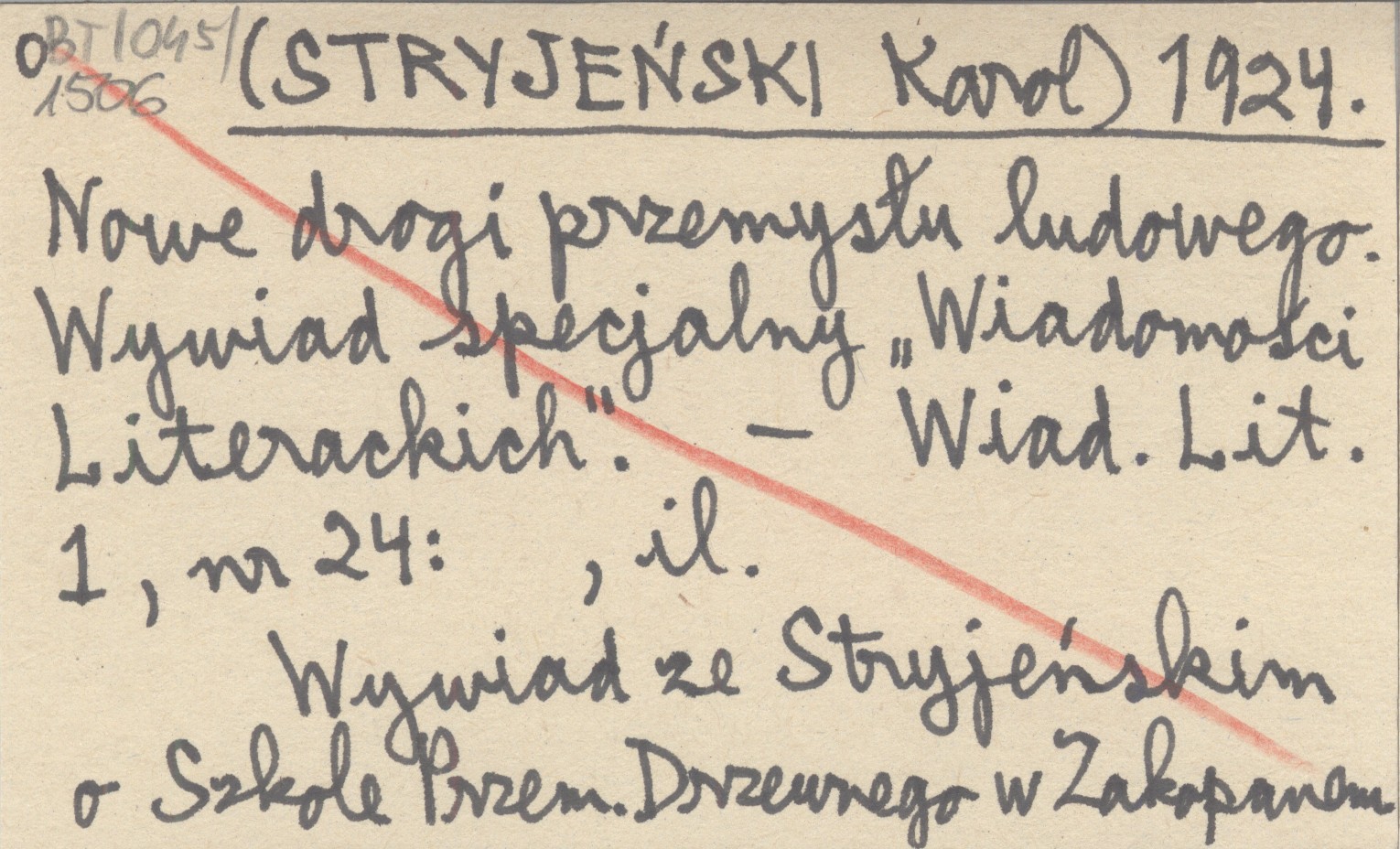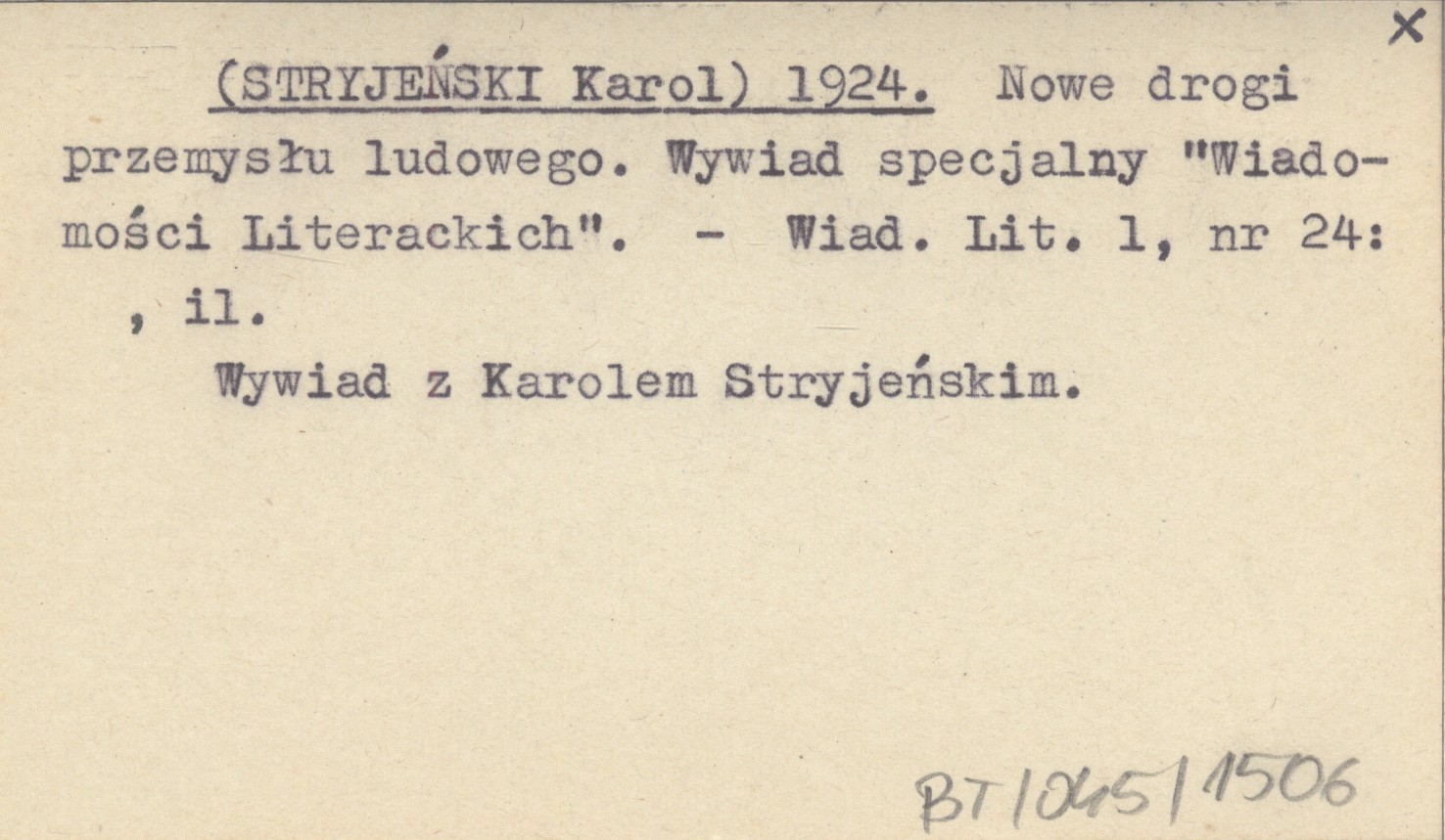 [STRYJEŃSKI Karol] 1924 Nowe drogi przemysłu ludowego. Wywiad specjalny "Wiadomości Literackich".