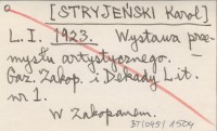 L. I. [STRYJEŃSKI Karol] 1923 Wystawa przemysłu artystycznego.