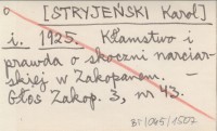 i. [STRYJEŃSKI Karol] 1925 Kłamstwo i prawda o skoczni narciarskiej w Zakopanem.