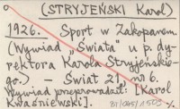 [STRYJEŃSKI Karol] 1926 Sport w Zakopanem. (Wywiad "Świata" u p. dyrektora Karola Stryjeńskiego).