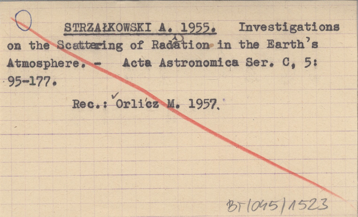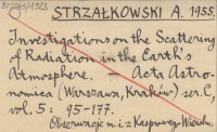 STRZAŁKOWSKI A. 1955 Investigations on the Scattering of Radiation in the Earth's Atmosphere.