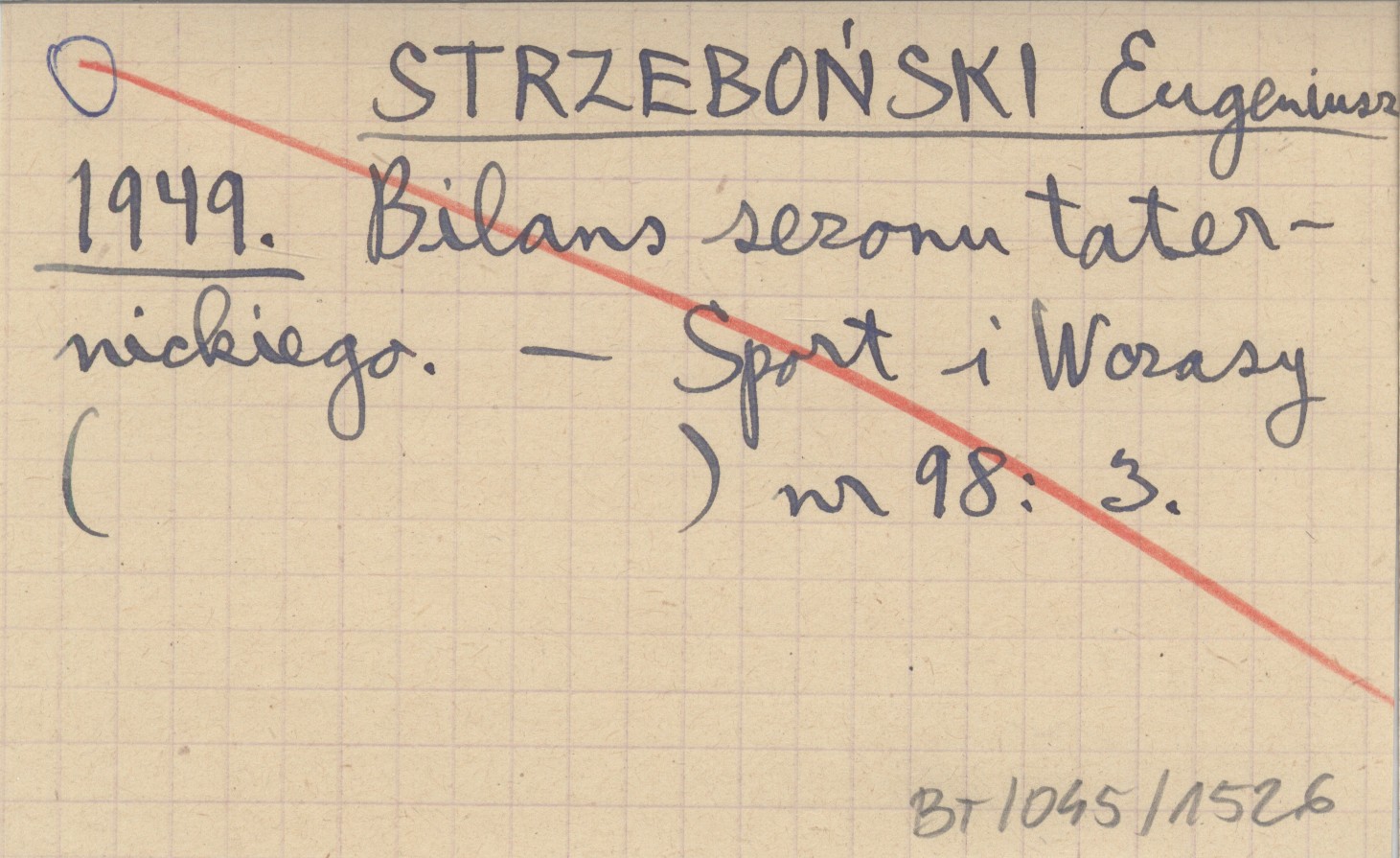 STRZEBOŃSKI Eugeniusz 1949 Bilans sezonu taternickiego.