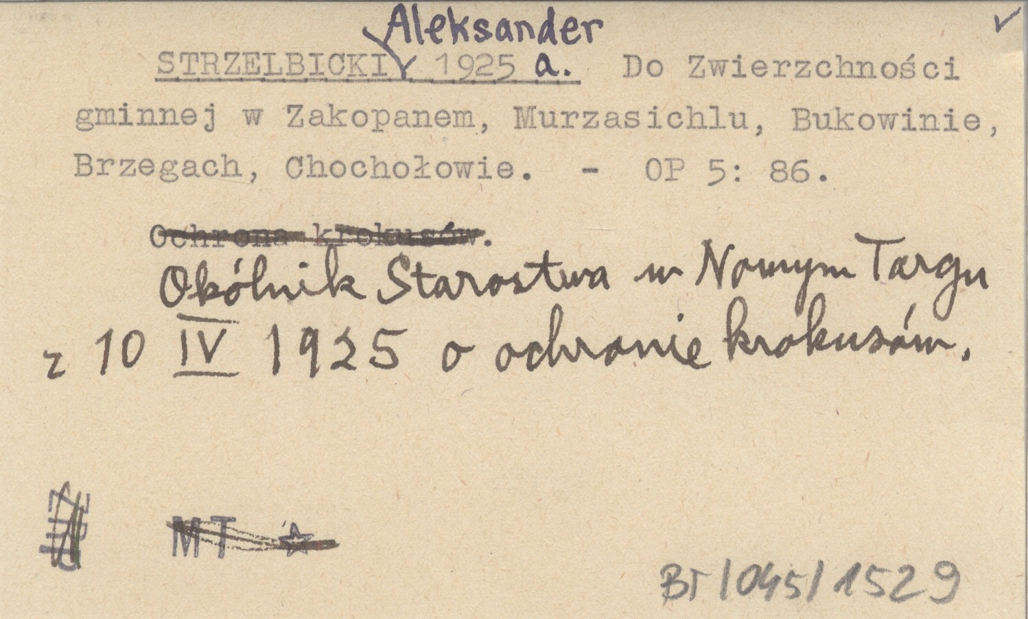 Ochrona Przyrody, 5: 86. Okólnik Starostwa w Nowym Targu z 10 IV 1925 o ochronie krokusów.