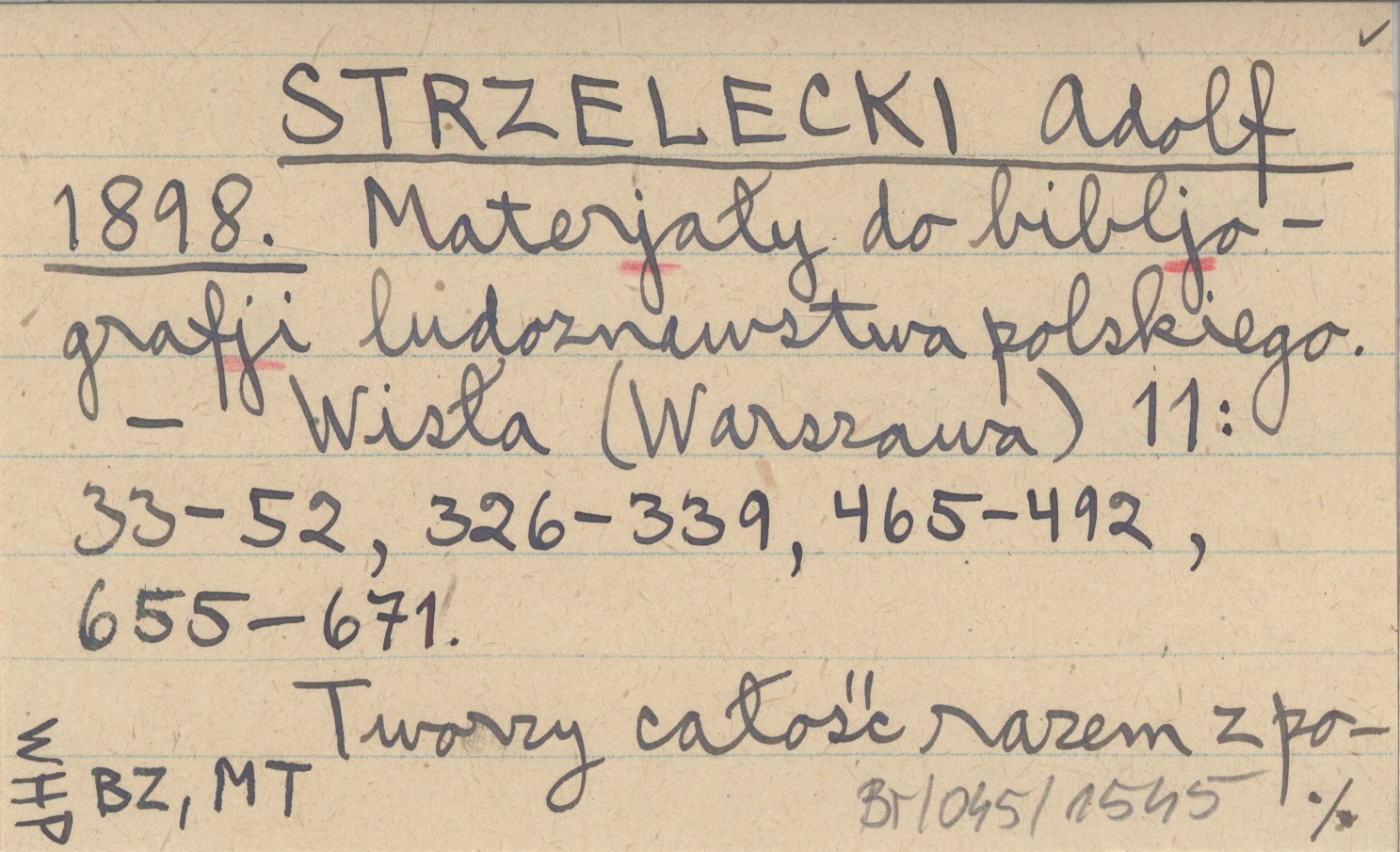 STRZELECKI Adolf 1898 Materjały do bibljografji ludoznawstwa polskiego.