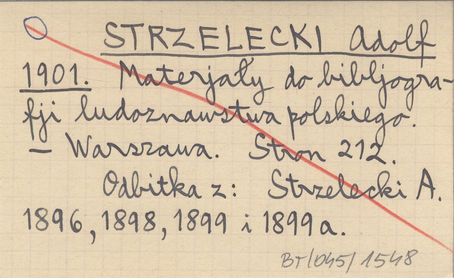 STRZELECKI Adolf 1901 Materjały do bibljografji ludoznawstwa polskiego.