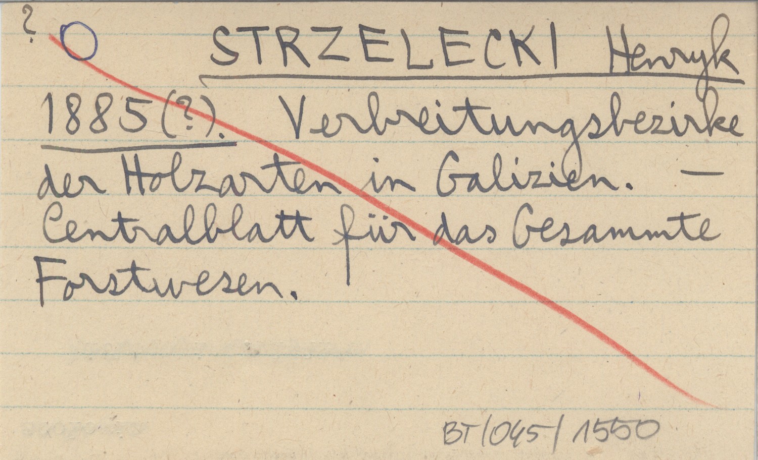 STRZELECKI Henryk 1885 (?) Verbreitungsbezirke der Holzarten in Galizien.