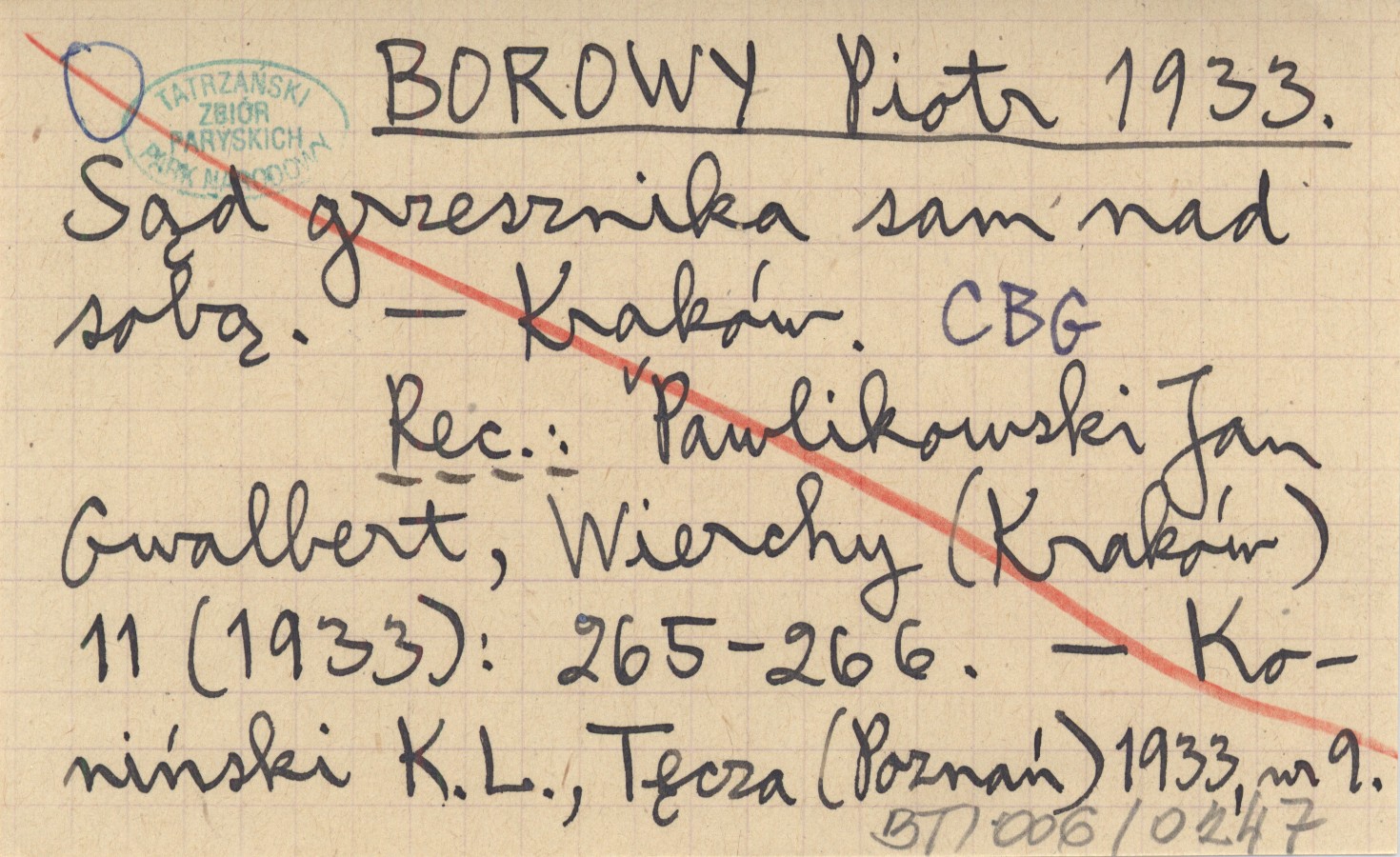 Kraków , REC: PAWLIKOWSKI Jan Gwalbert, Wierchy (Kraków) 11 (1933): 265-266 ; KONIŃSKI K. L., Tęcza (Poznań) 1933, nr 9.