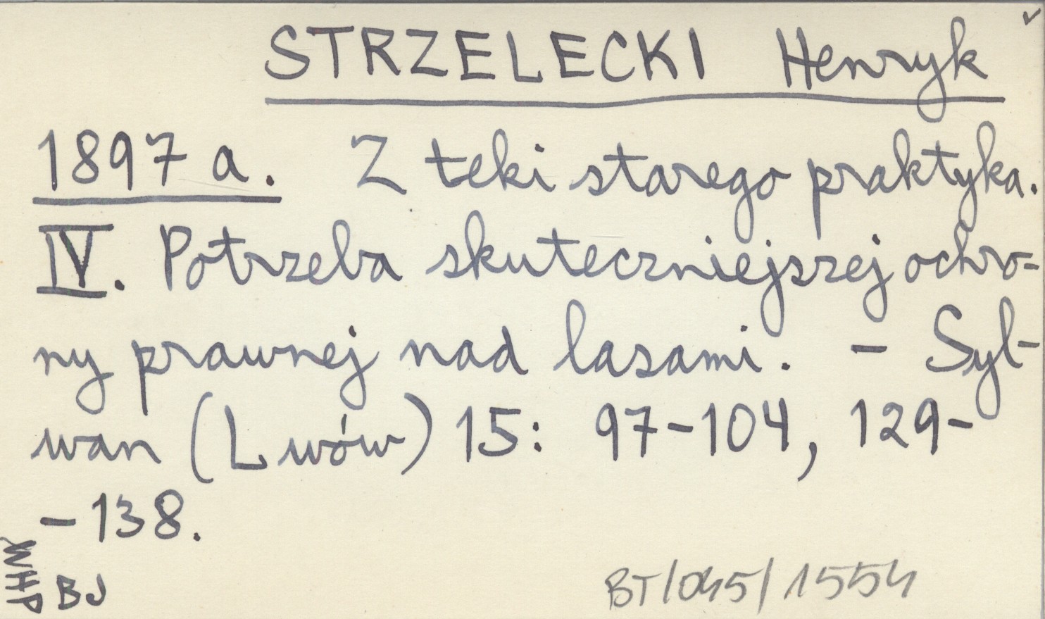 STRZELECKI Henryk 1897 a Z teki starego praktyka. IV. Potrzeba skuteczniejszej ochrony prawnej nad lasami.
