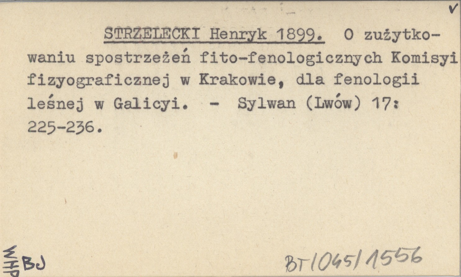 STRZELECKI Henryk 1899 O zużytkowaniu spostrzeżeń fito-fenologicznych Komisyi fizyograficznej w Krakowie, dla fenologii leśnej w Galicyi.