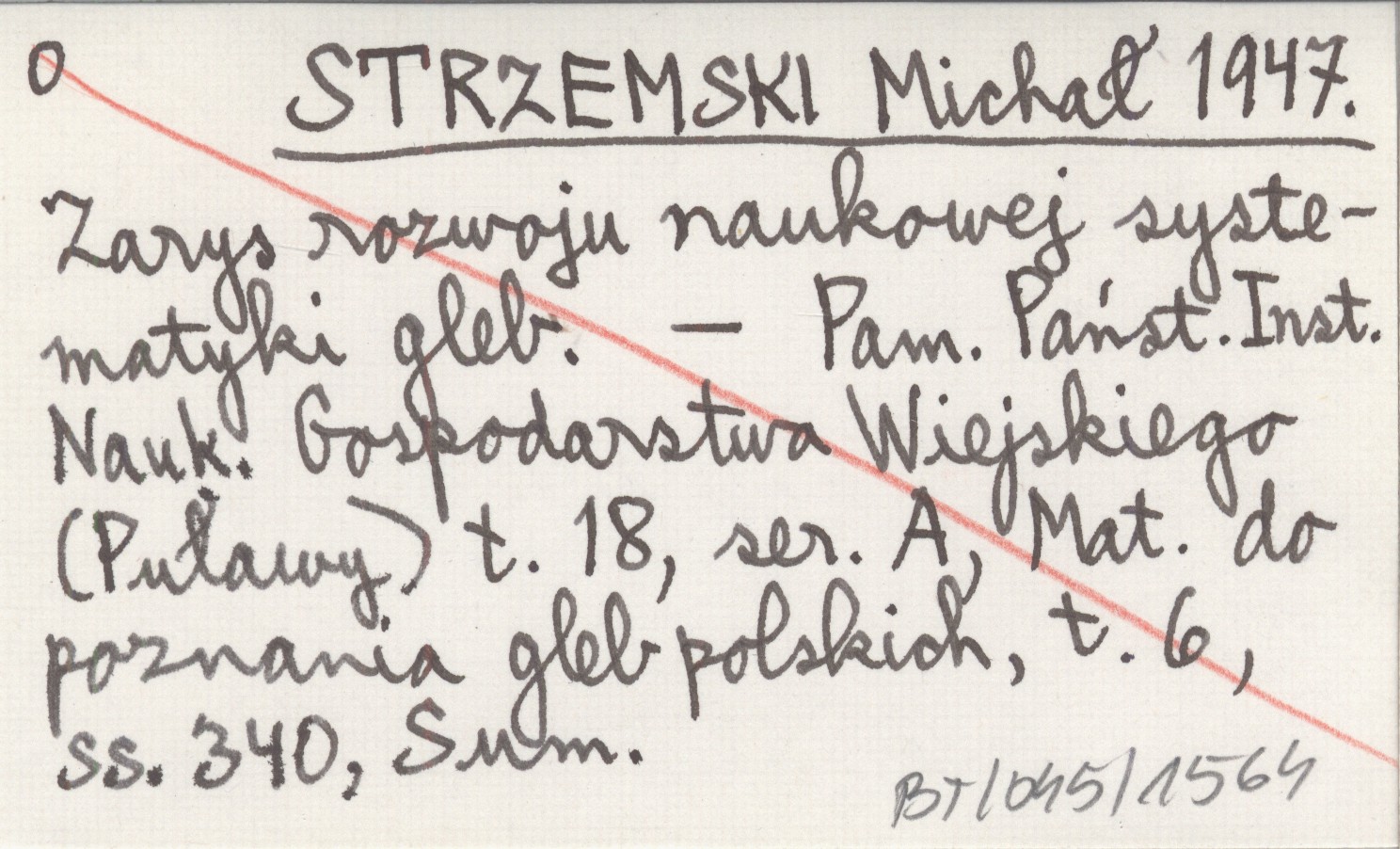 STRZEMSKI Michał 1947 Zarys rozwoju naukowej systematyki gleb.
