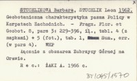 STUCHLIKOWA Barbara STUCHLIK, Leon. ; 1962 Geobotaniczna charakterystyka pasma Policy w Karpatach Zachodnich.