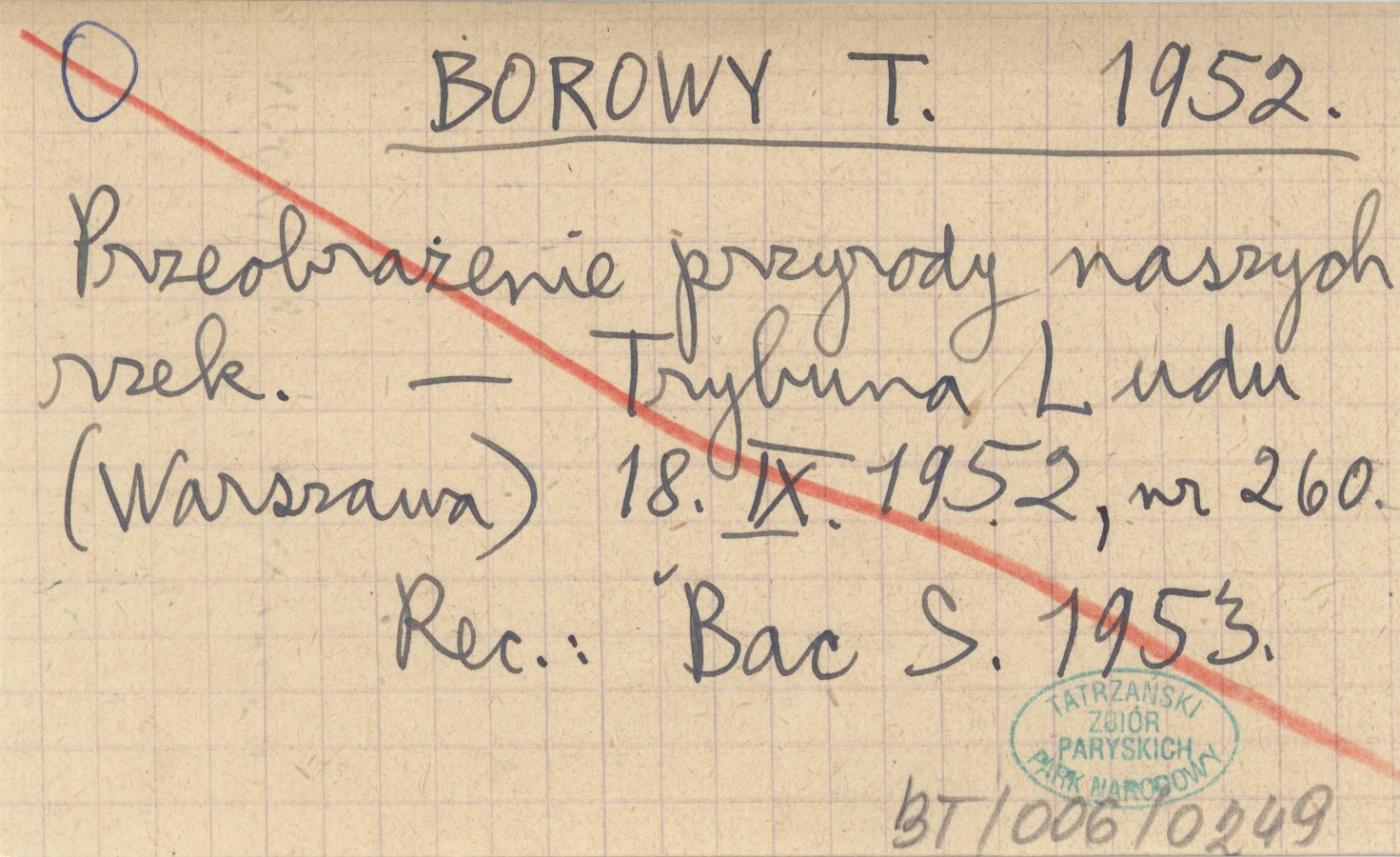 Trybuna Ludu (Warszawa) , 18 IX 1952, nr 260. REC: BAC S. 1953
