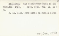 Studenten- und Schülerherbergen in den Beskiden. 1914