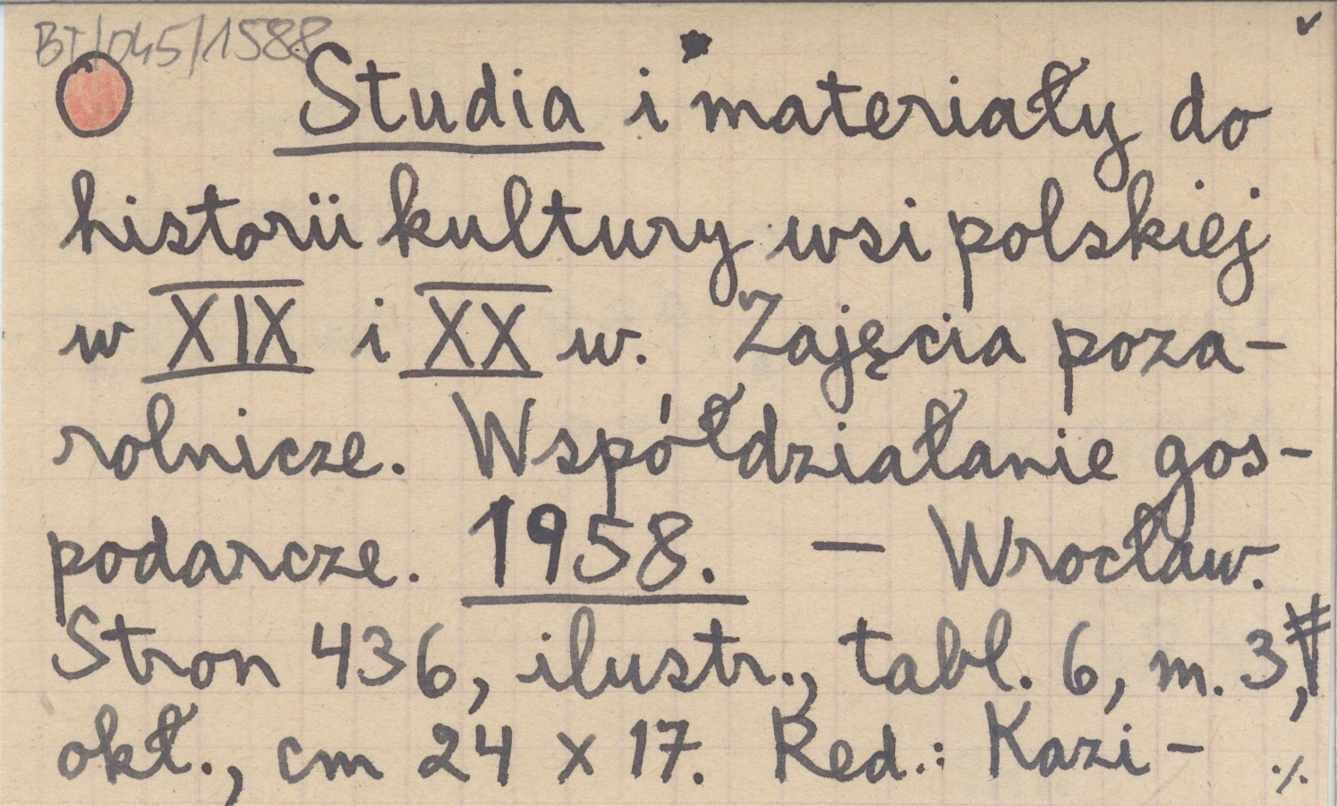 RED: ZAWISTOWICZ-ADAMSKA, Kazimiera. ; Studia i materiały do historii kultury wsi polskiej w XIX i XX w. Zajęcia pozarolnicze. Współdziałanie gospodarcze. 1958
