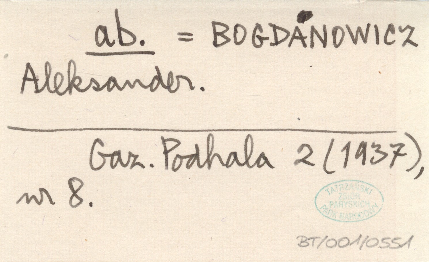 ab. BOGDANOWICZ Aleksander Gazeta Podhala 2 (1937), nr 8.