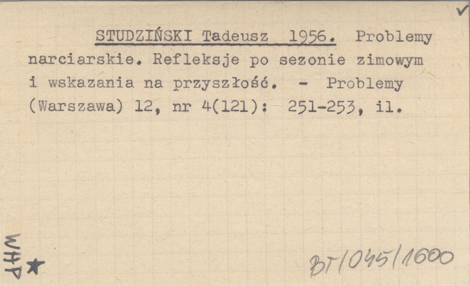 STUDZIŃSKI Tadeusz 1956 Problemy narciarskie. Refleksje po sezonie zimowym i wskazania na przyszłość.