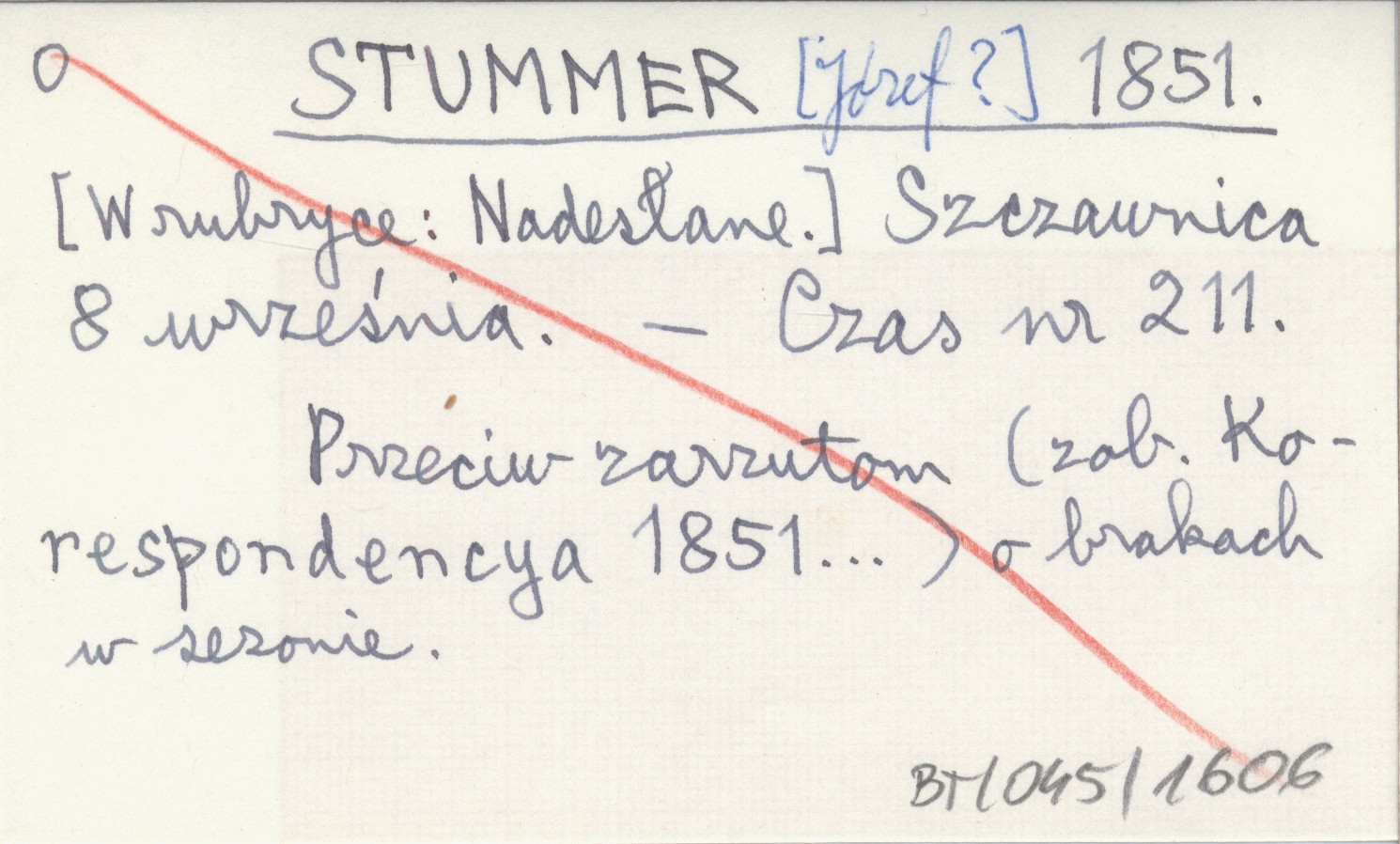 Czas, Nr 211. Przeciw zarzutom (zob. Korespondencya 1851...) o brakach w sezonie.
