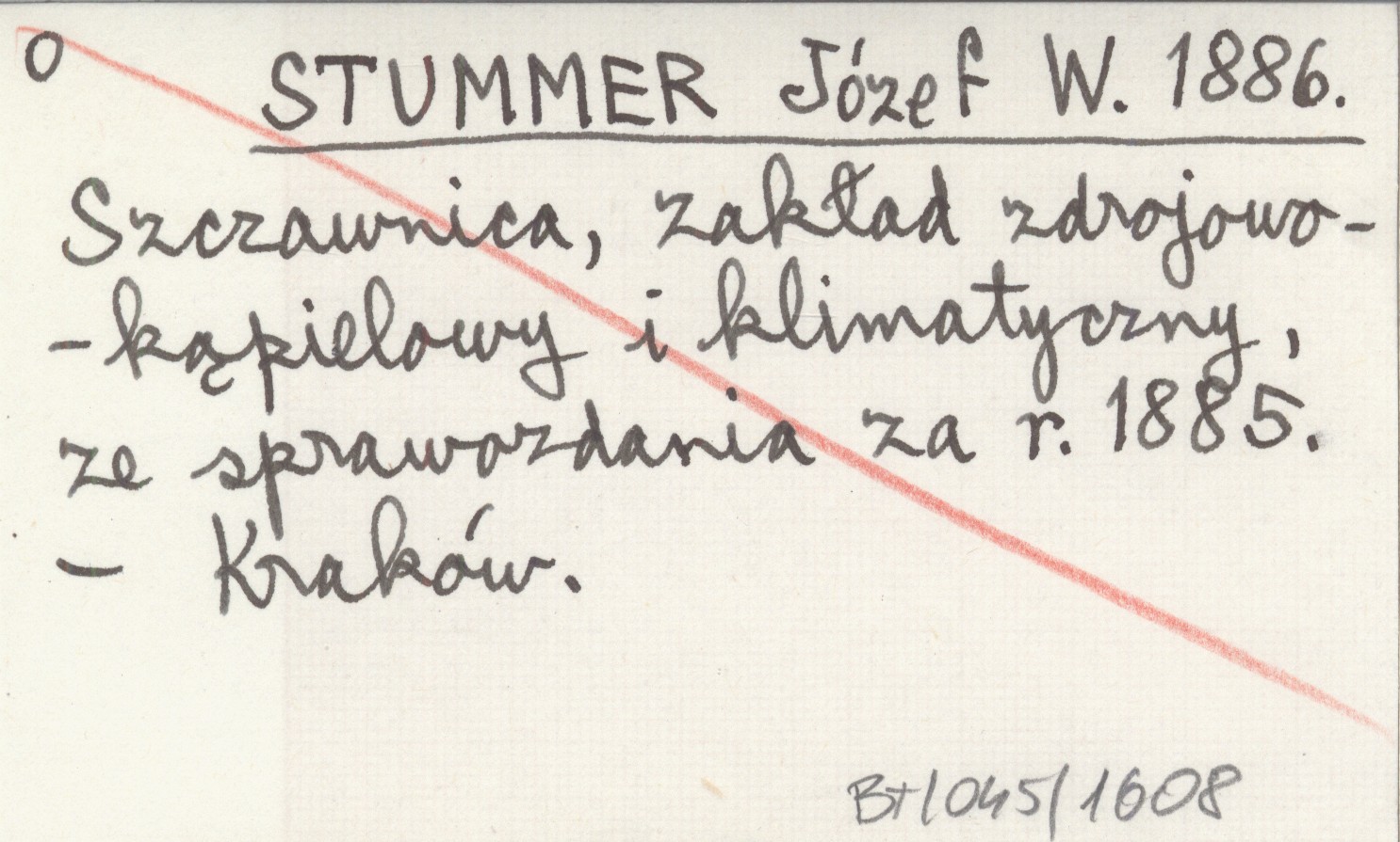 STUMMER Józef W. 1886 Szczawnica, zakład zdrojowo-kąpielowy i klimatyczny, ze sprawozdania za r. 1885.