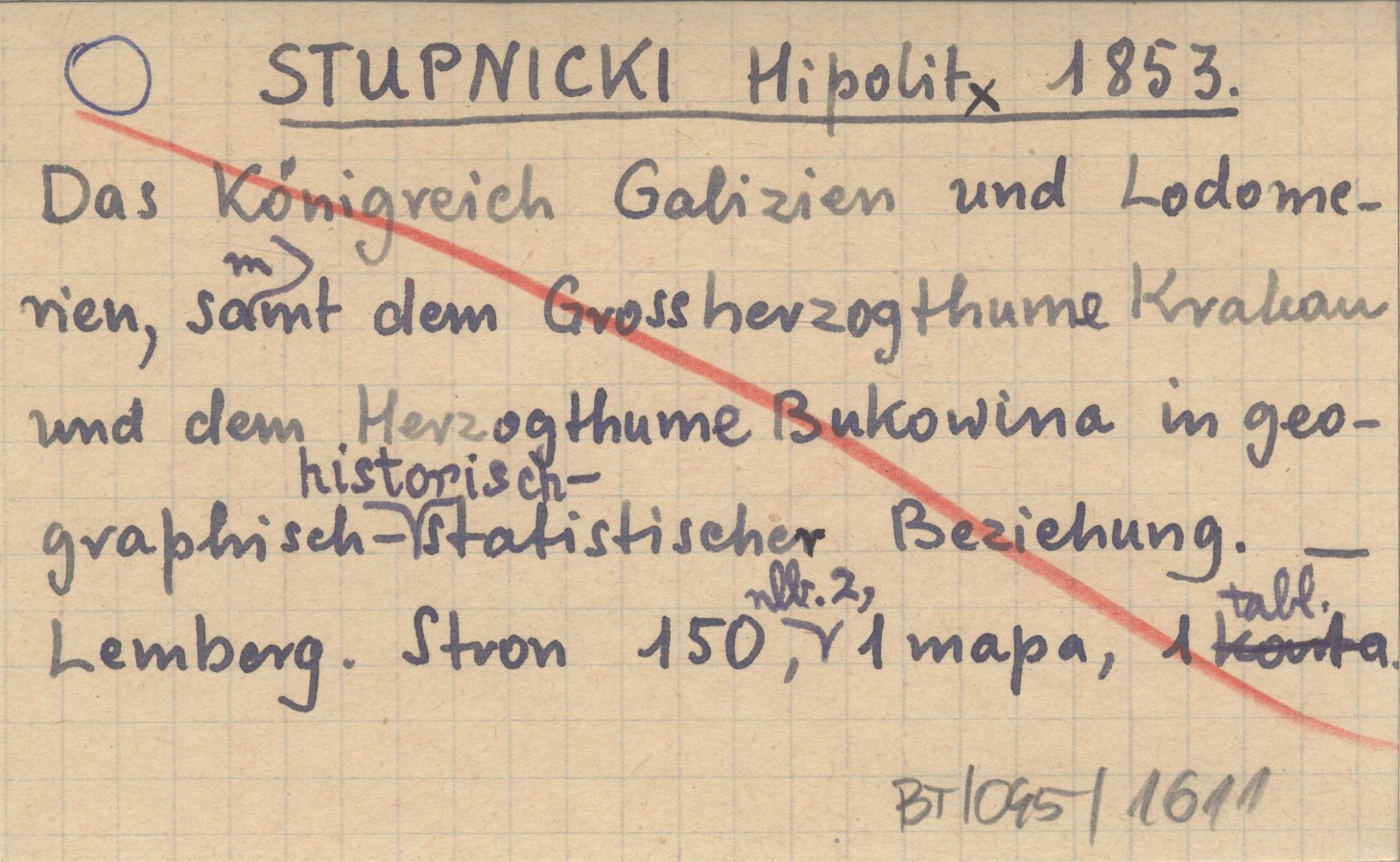 STUPNICKI Hipolit 1853 Das Königreich Galizien und Lodomerien, sammt dem Grossherzogthume Krakau und dem Herzogthume Bukowina in geographisch-historisch-statistischer Beziehung.