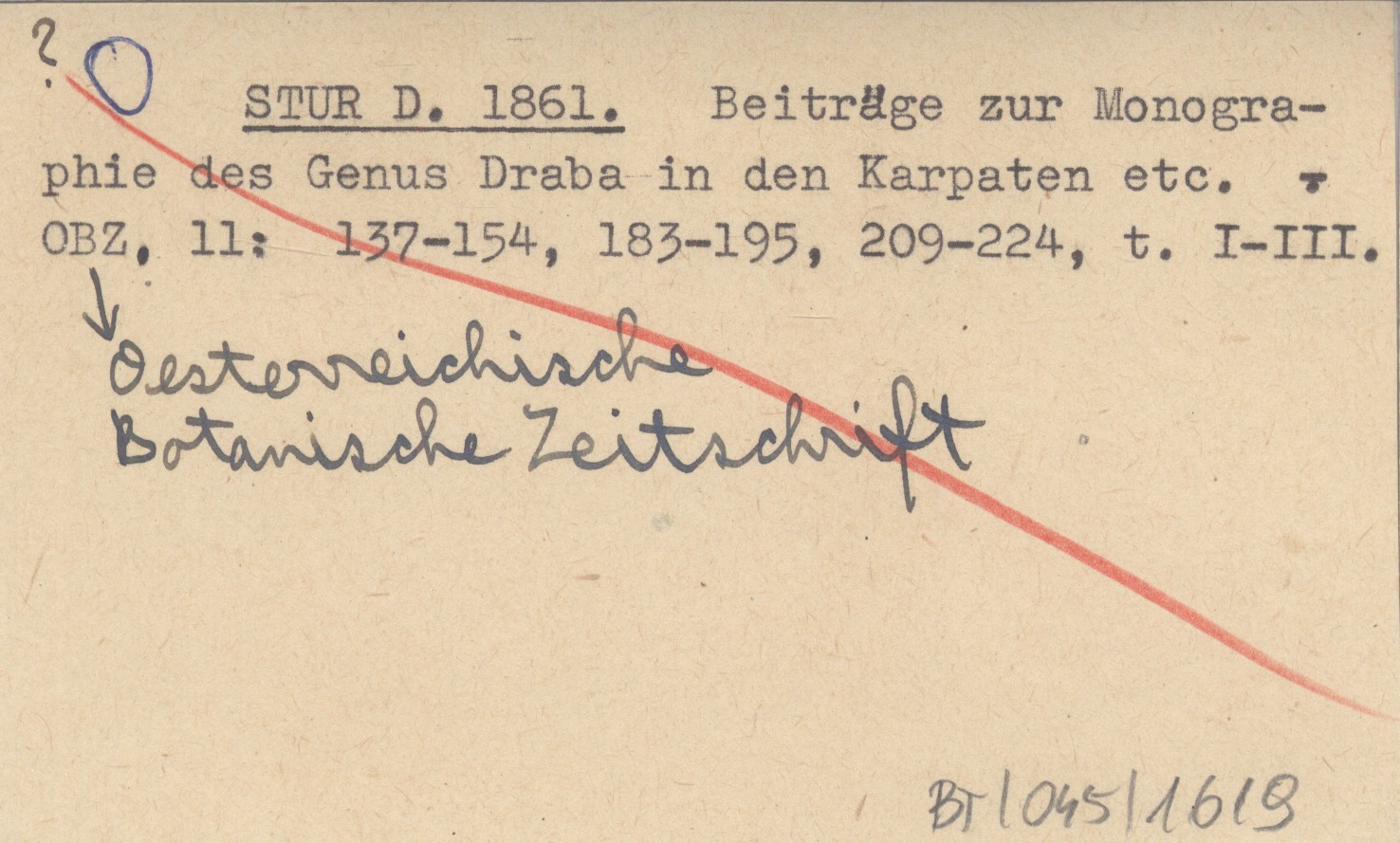 STUR D. 1861 Beiträge zur Monographie des Genus Draba in den Karpaten etc.
