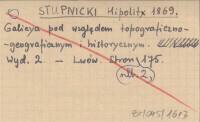 STUPNICKI Hipolit 1869 Galicya pod względem topograficzno-geograficznym i historycznym.