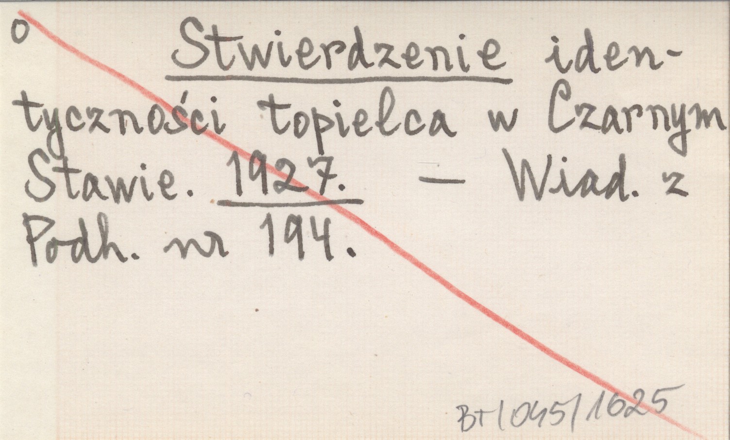 Stwierdzenie identyczności topielca w Czarnym Stawie. 1927