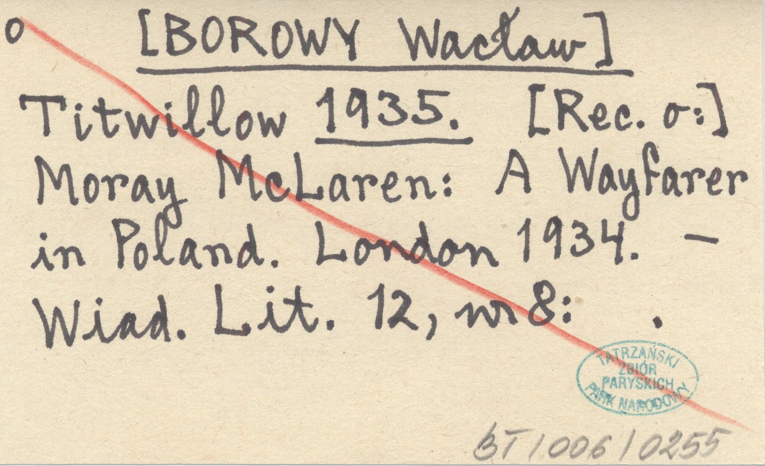 Titwillow [BOROWY Wacław] 1935 [Rec. o:] Moray McLaren: A Wayfarer in Poland. London 1934.