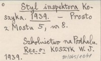 Styl inspektora Koszyka. 1939