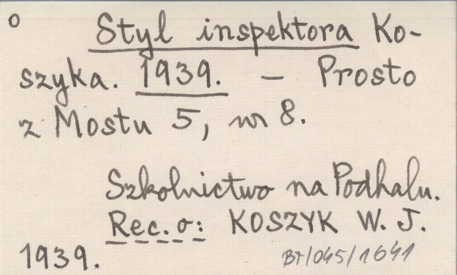 Prosto z Mostu, 5, nr 8. Szkolnictwo na Podhalu. Recenzja o: KOSZYK W. J. 1939.