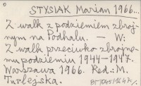 STYSIAK Marian RED: TURLEJSKA, M. ; 1966... Z walk z podziemiem zbrojnym na Podhalu.