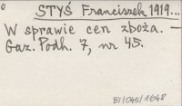 STYŚ Franciszek 1919... W sprawie cen zboża.